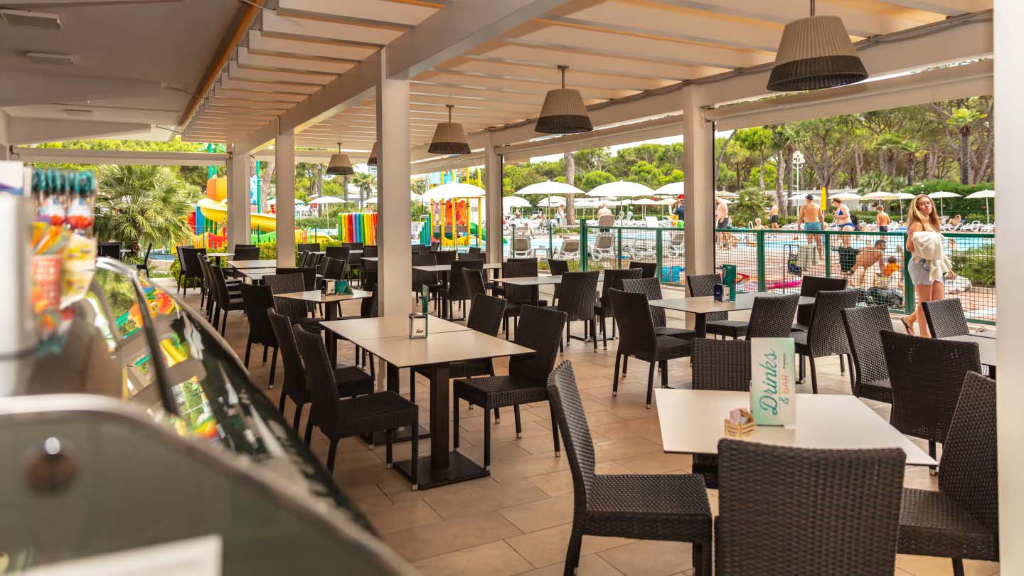 Eten en drinken kun je in het restaurant met bar. Er is een pizzeria waar de echte Italiaanse pizza’s vers uit de oven komen. Daarna genieten van een heerlijk ijsje in de ijssalon, dat geeft een ultiem vakantiegevoel. Ook is er een supermarkt, diverse winkeltjes (kapsalon) en een gezellige discotheek.