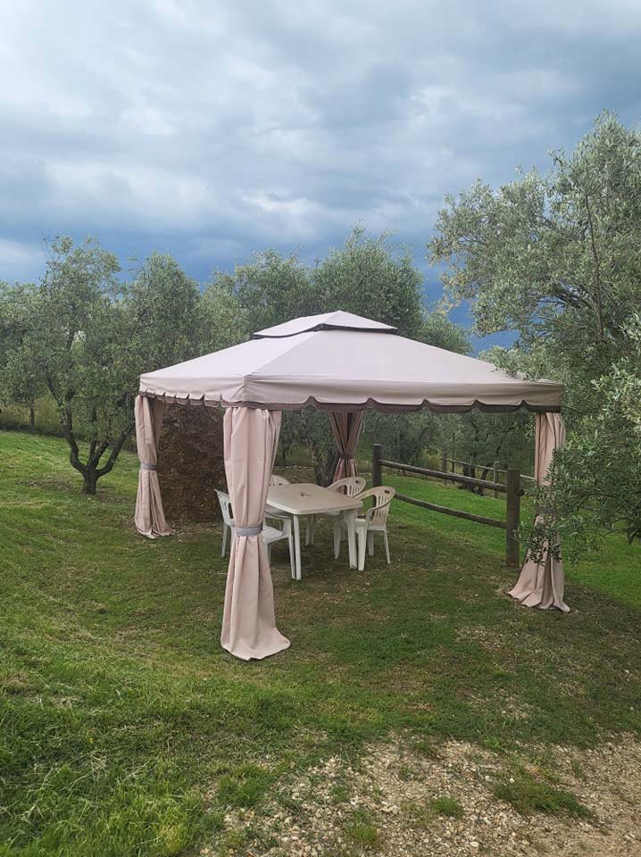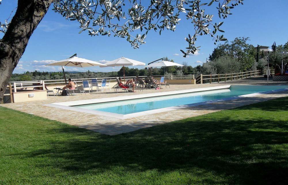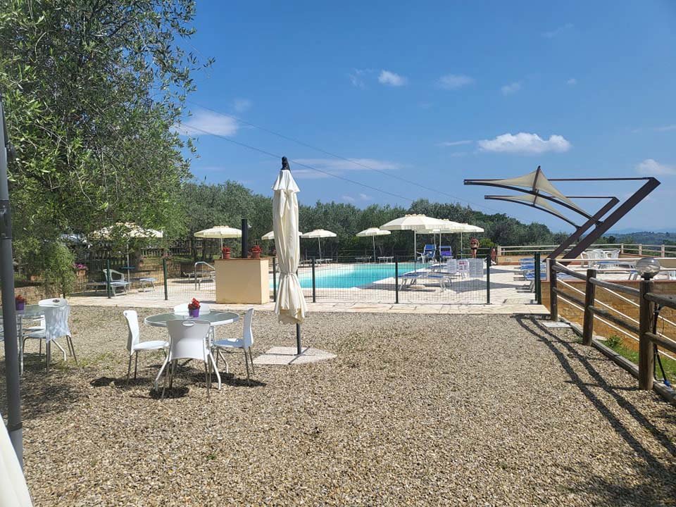 De comfortabele safaritenten van de Nederlandse organisatie Tendi, hebben een mooi uitzicht op het prachtige omliggende landschap. De luxe kampeertenten staan tussen de olijfbomen. De gasten kunnen genieten van en afkoelen in het mooi aangelegde zwembad en relaxen bij het gezellige kleine barretje. Verder kun je heerlijk vers brood bestellen in het kleine campingwinkeltje waar ook diverse Toscaanse specialiteiten te koop zijn. En zit je te genieten voor de tent van al die heerlijke kleine hapjes en heerlijke wijnen van de locale marktjes, maak je geen zorgen morgen kun je weer volop wandelen of fietsen in deze prachtige omgeving.